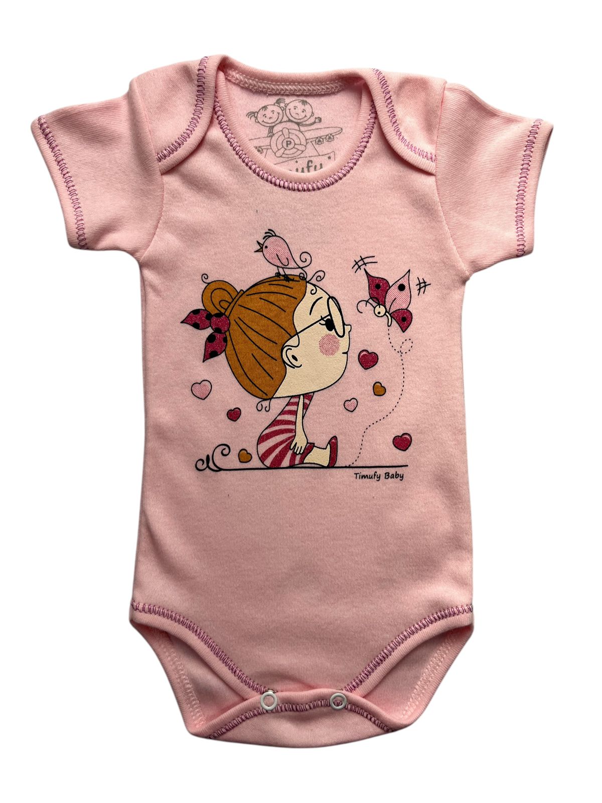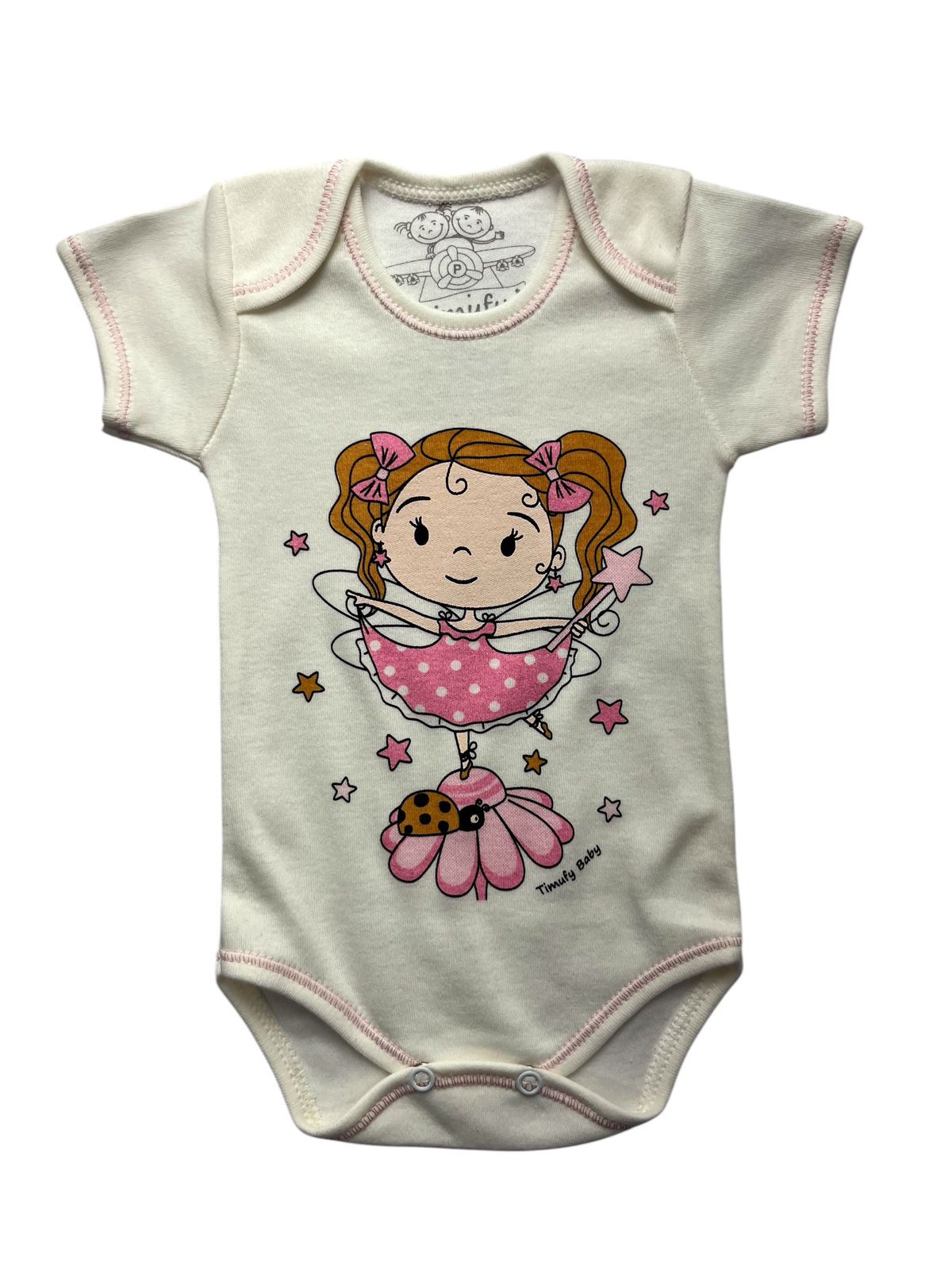 Botões entre as pernas para facilitar na troca de fralda e ombros transpassados permitindo mais facilidade na hora da troca.