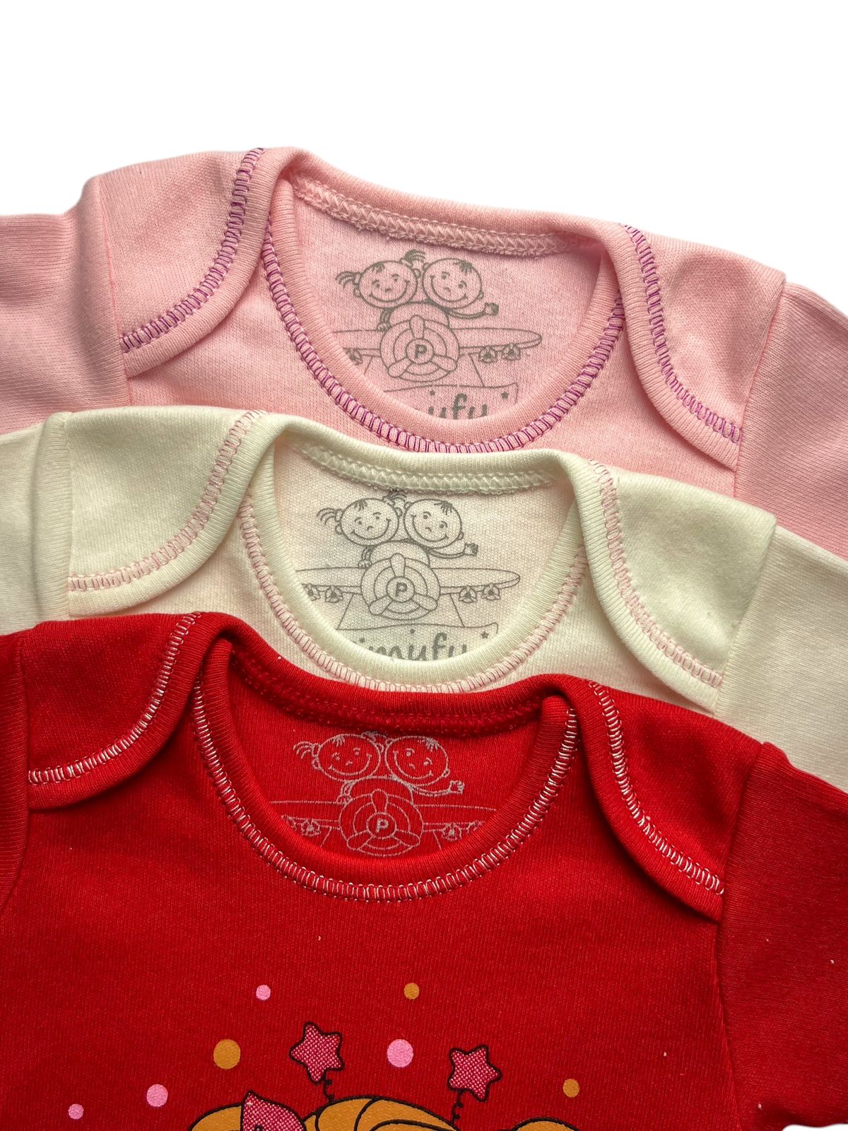 Versatilidade: Use-os como primeira camada de roupa em dias mais quentes. Este kit é essencial para o guarda-roupa do seu bebê.