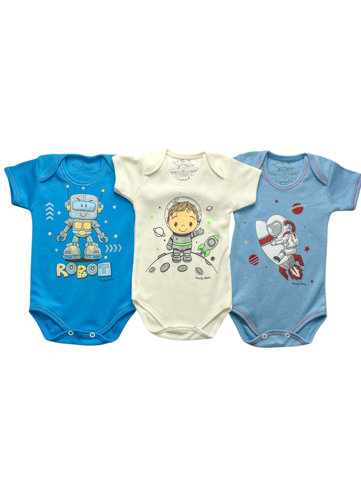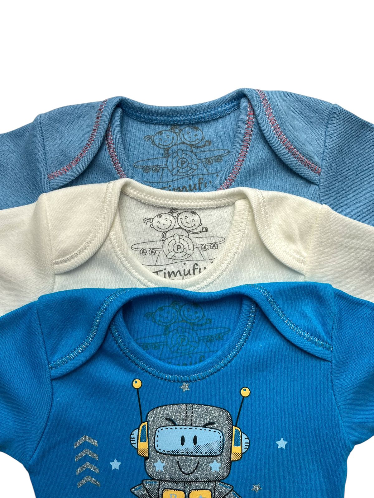 Versatilidade: Use-os como primeira camada de roupa em dias mais quentes. Este kit é essencial para o guarda-roupa do seu bebê.