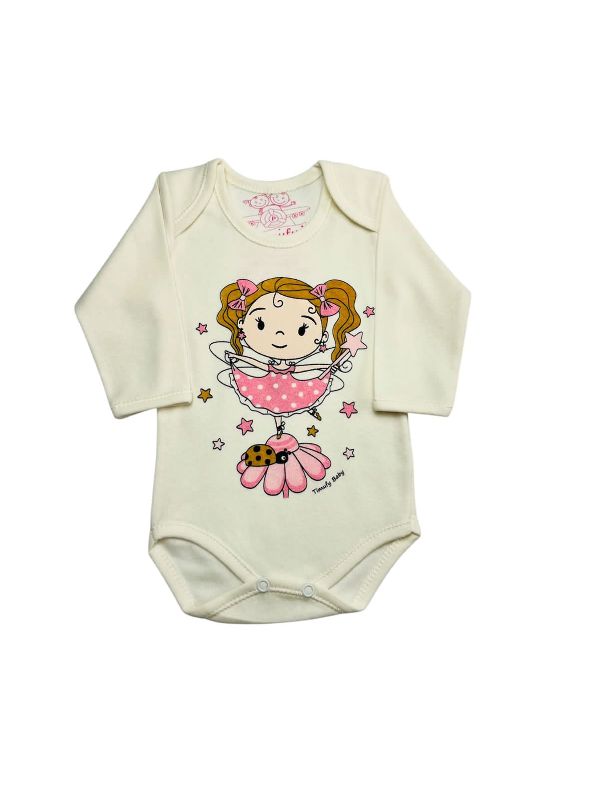 Botões entre as pernas para facilitar na troca de fralda e ombros transpassados permitindo mais facilidade na hora da troca.