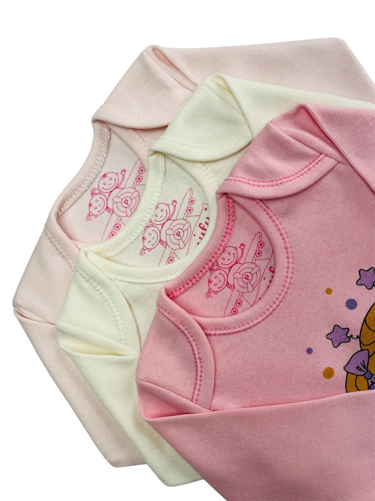 Versatilidade: Use-os como primeira camada de roupa em dias mais frios. Este kit é essencial para o guarda-roupa do seu bebê.