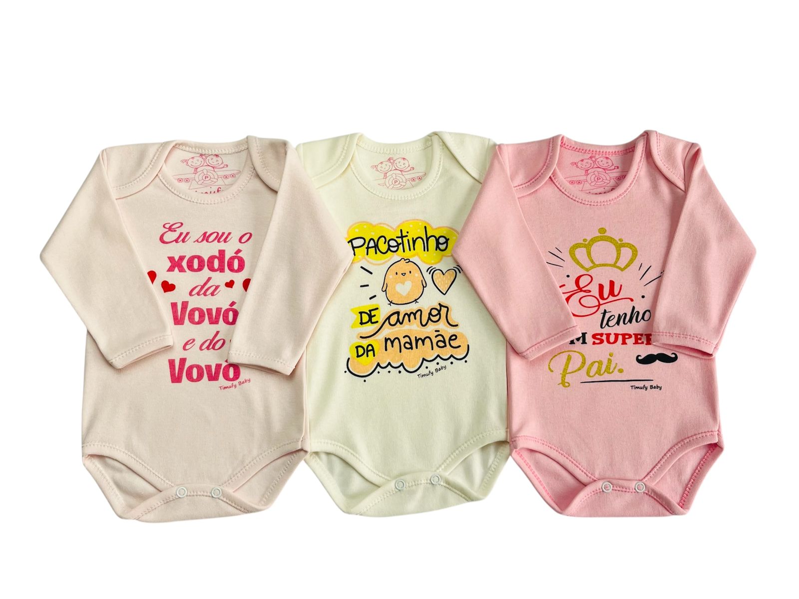 Versatilidade: Use-os como primeira camada de roupa em dias mais frios. Este kit é essencial para o guarda-roupa do seu bebê.