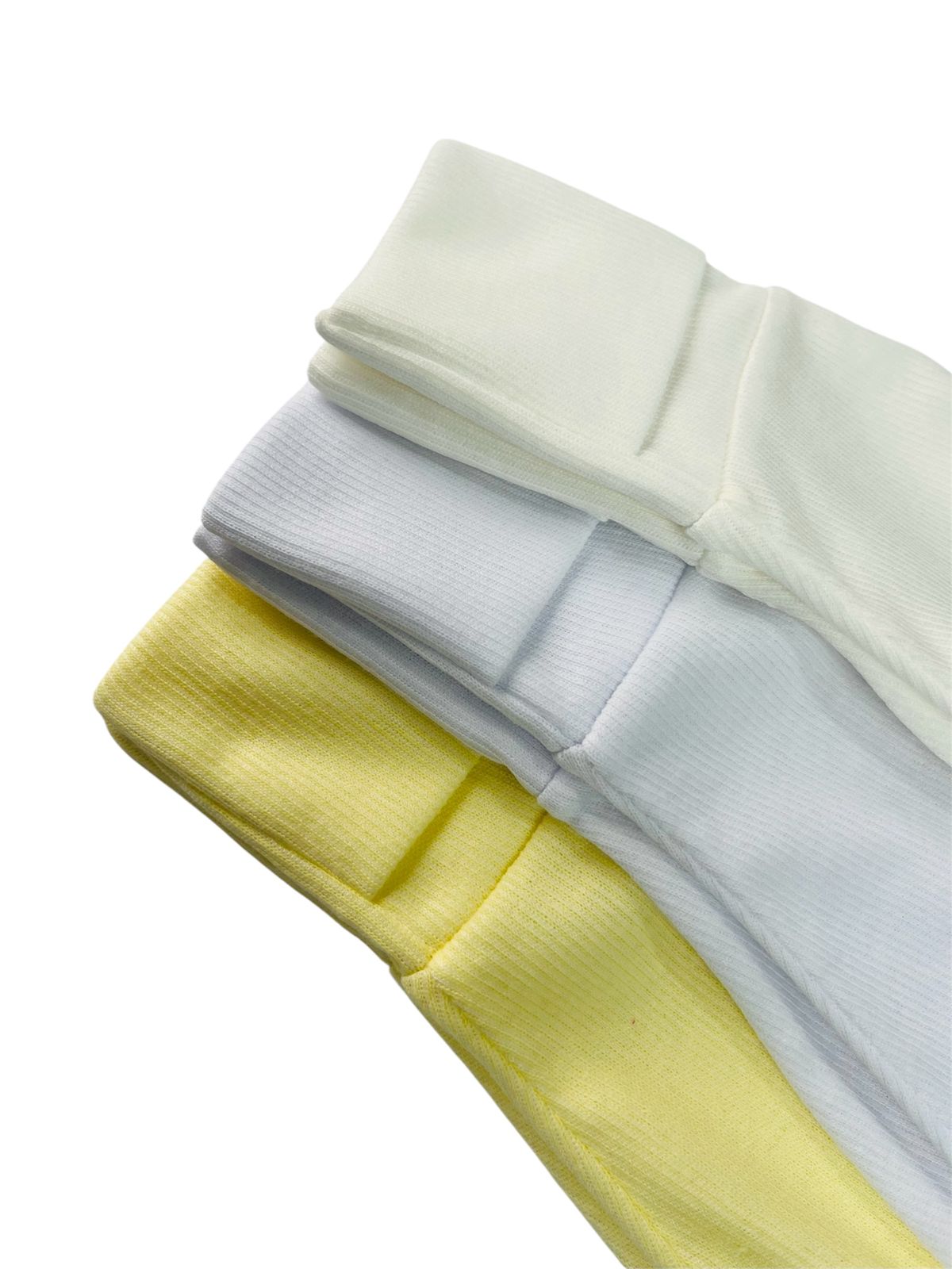 Kit com 3 peças do mesmo tamanho, mijão Canelado com pé reversível.
