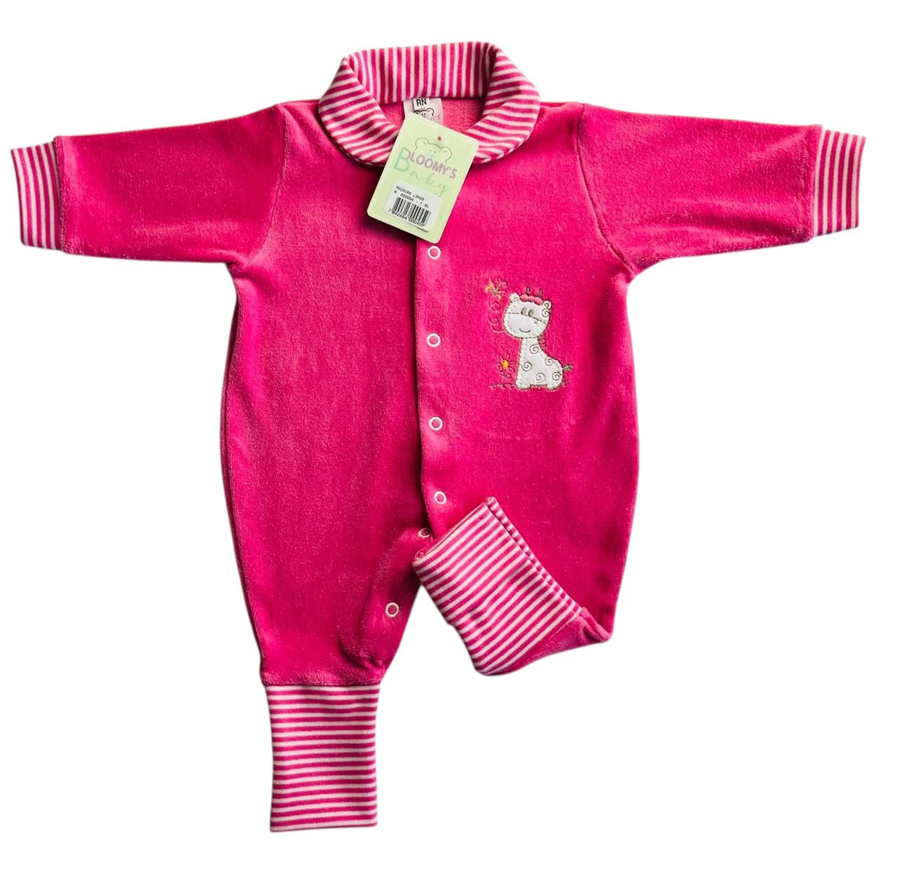 MACACÃO BEBÊ LONGO PLUSH BORDADO PÉ REVERSÍVEL FEMININO