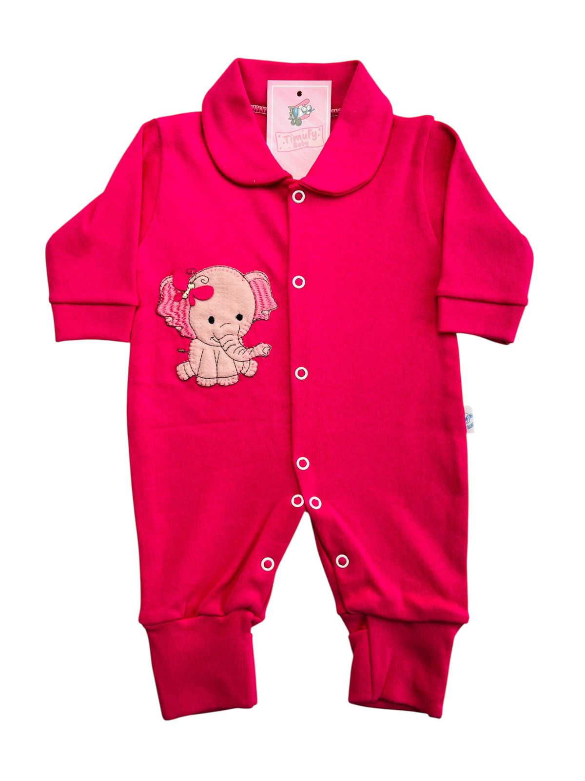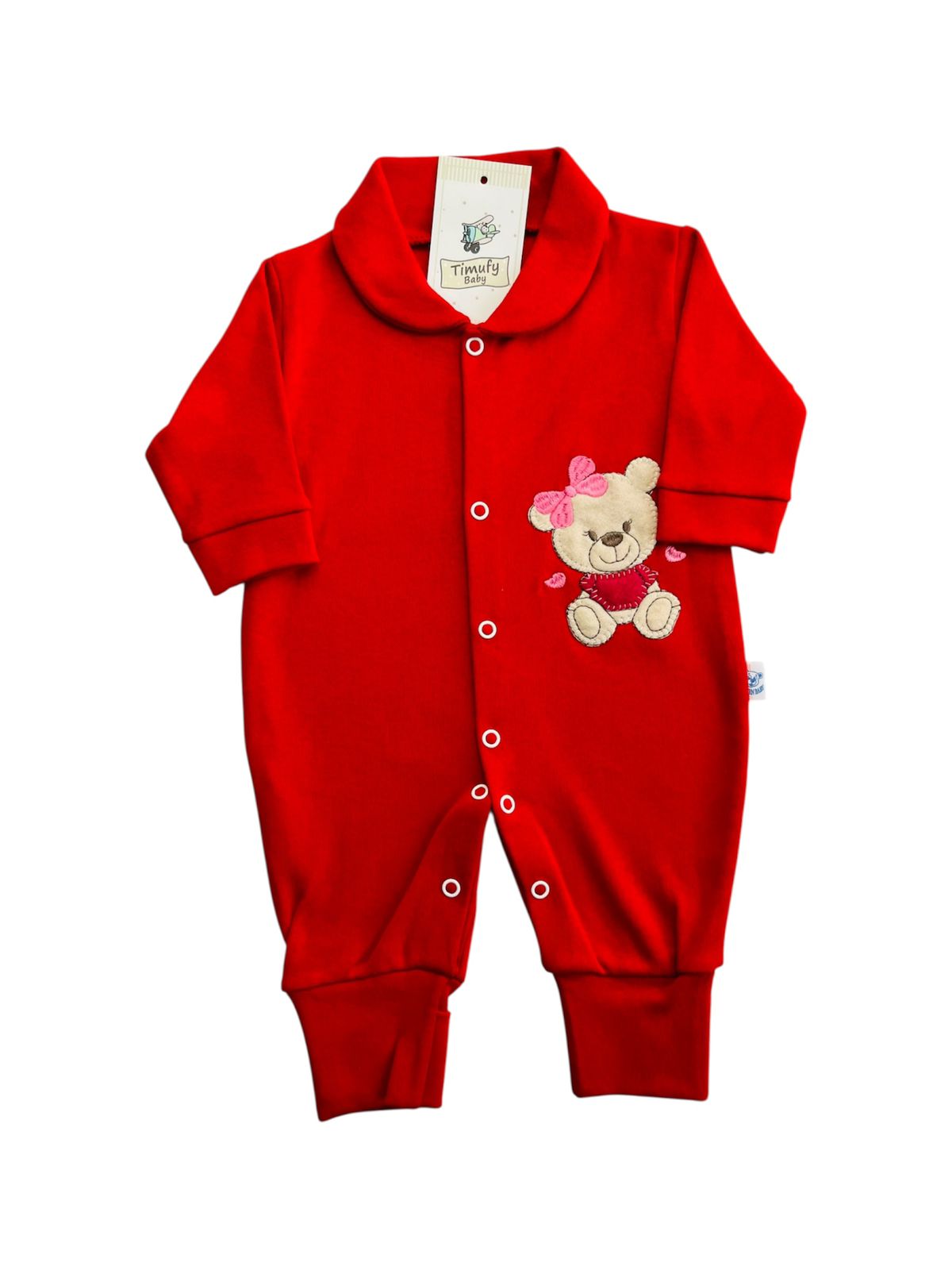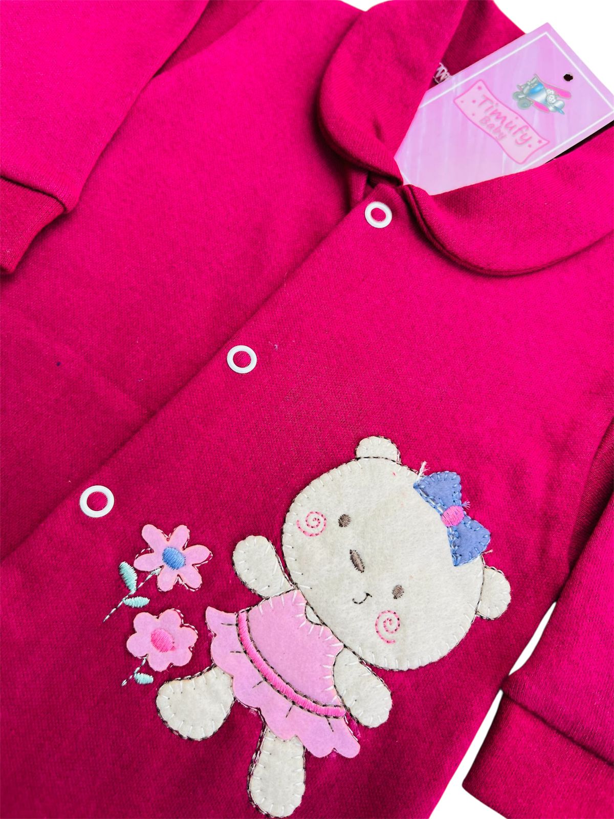 MACACÃO BEBÊ LONGO SUEDINE BORDADO COM BOTÃO PÉ REVERSÍVEL FEMININO