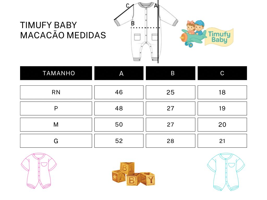 Zíper com proteção interna e externa, para não machucar e nem ter contato com a pele delicada do seu bebê.