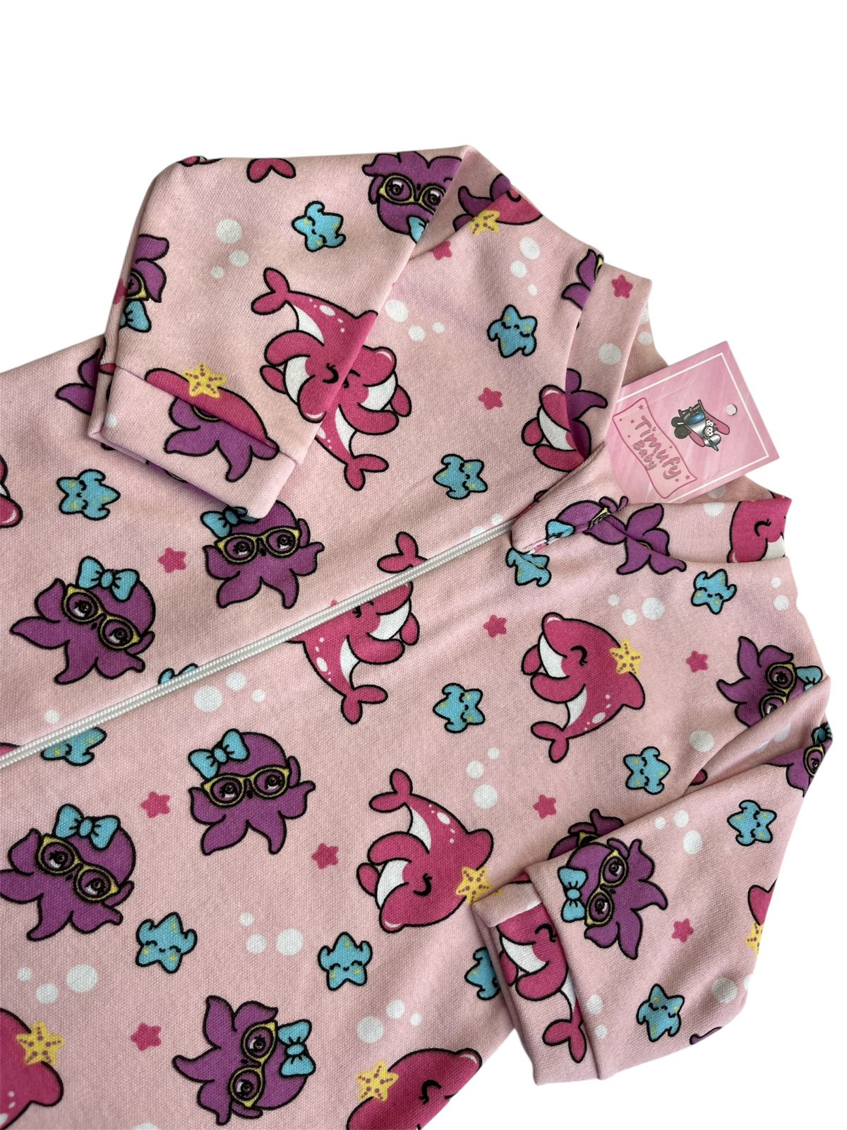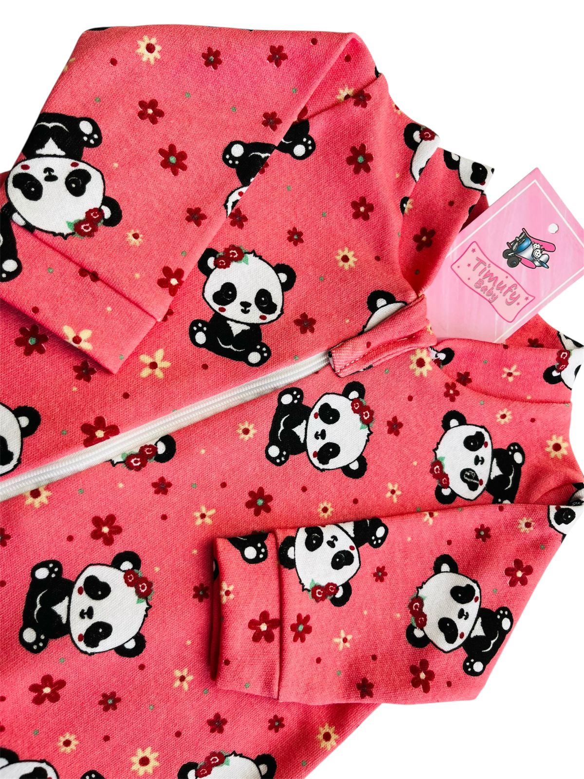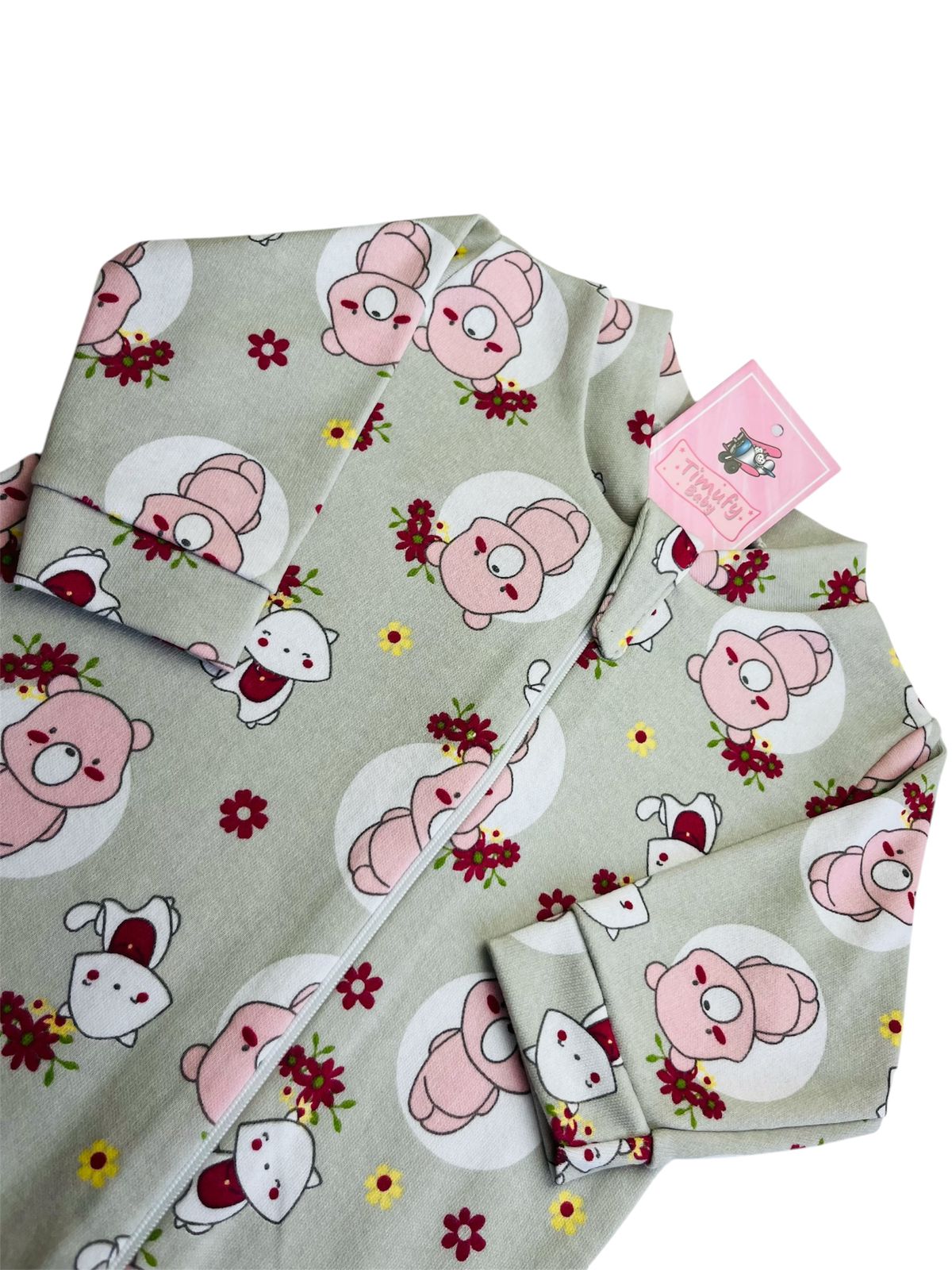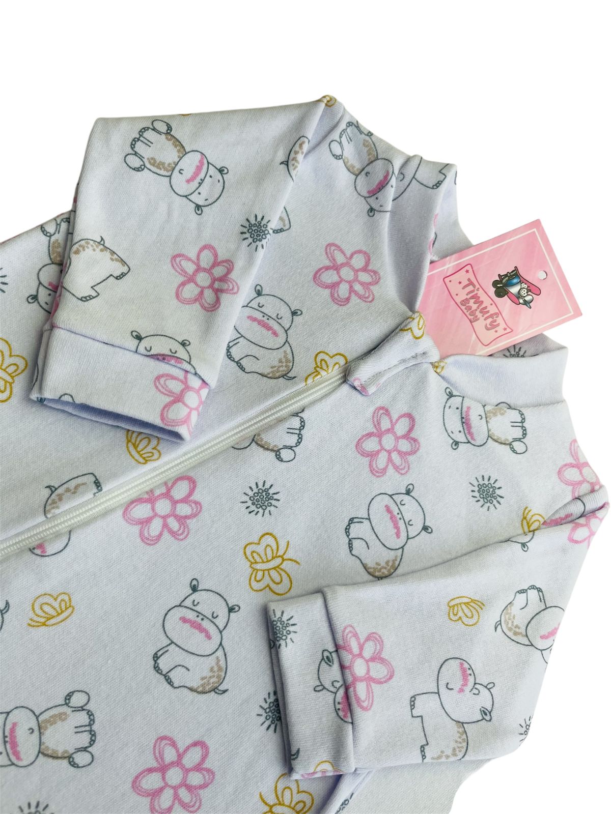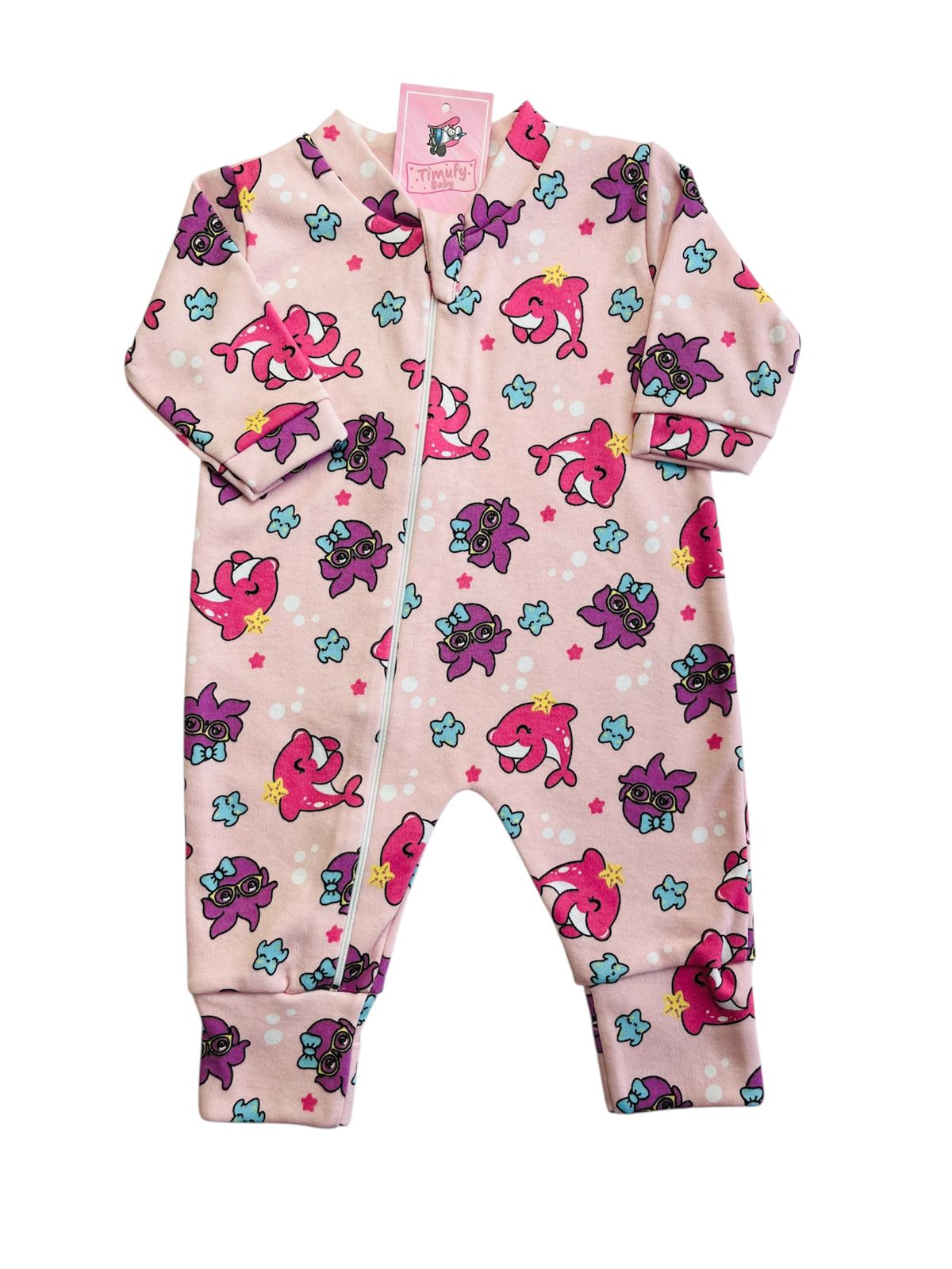 MACACÃO BEBÊ LONGO SUEDINE ESTAMPADO COM ZÍPER PÉ REVERSÍVEL FEMININO
