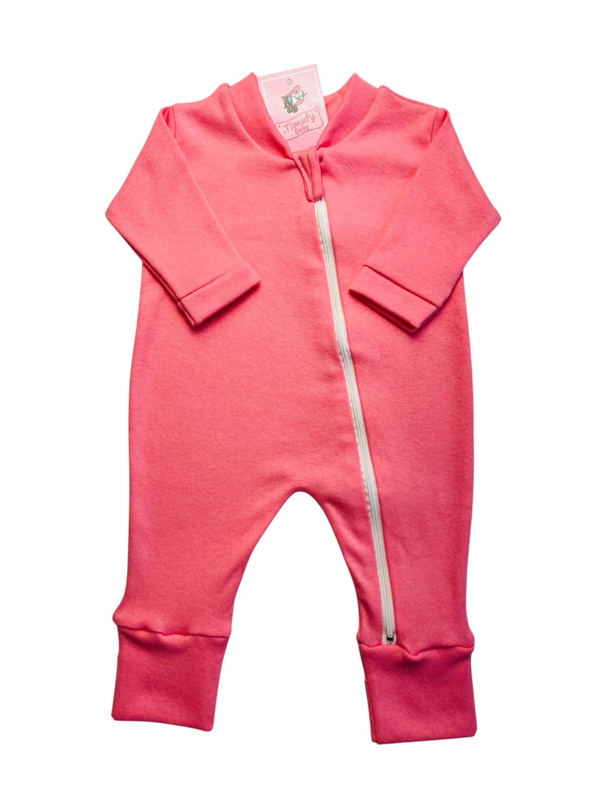 MACACÃO BEBÊ LONGO SUEDINE 100% ALGODÃO LISO COM ZIPER PÉ REVERSÍVEL FEMININO